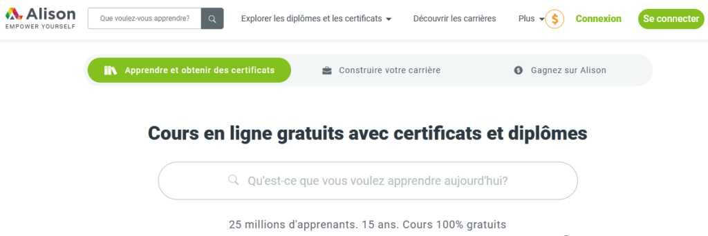 Si vous êtes dans le monde du travail et voulez développer vos compétences, la plateforme Alison course est ce qu’il vous faut. Faites-en un tour pour découvrir par vous-même les leçons qui sont proposées.